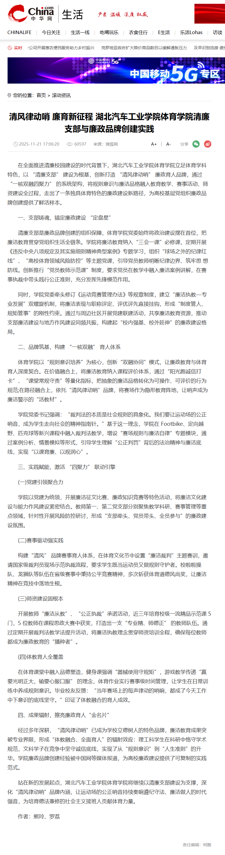 【中华网】清风律动哨 廉育新征程 湖北汽车工业学院体育学院清廉支部与廉政品牌创建实践