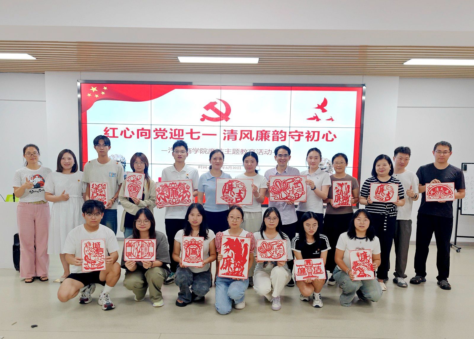 本网讯(文/罗珍)为庆祝中国共产党成立104周年,6月30日,汽车商学院在五教新商科智慧实验室举办“红心向党迎七一・清风廉韵守初心”主题活动,师生党员通过述廉宣讲、剪纸创作、承诺签名等形式接受清廉文化洗礼。